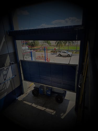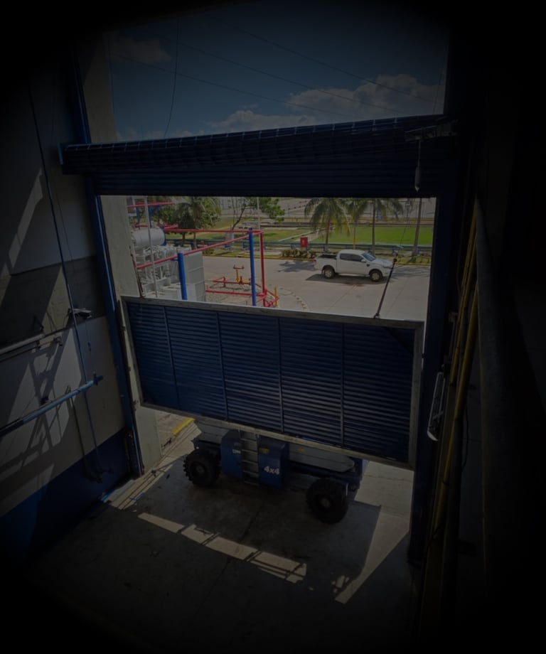 Puertas Gran Dimensión para bodegas industriales, Hangares y áreas de carga con amplitud mayor. Accionamiento manual y/o automático.