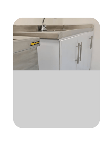 Muebles Fabricados en Melamina RH y Mesón Normalizado en Acero Inoxidable AISI 304